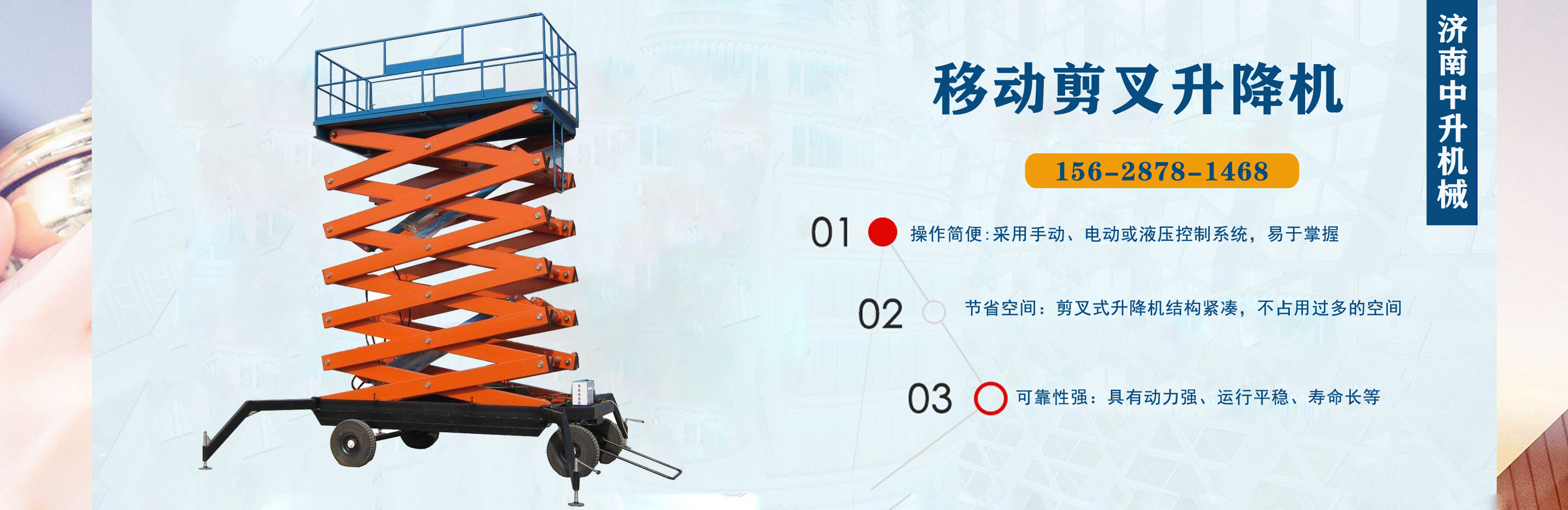 濟(jì)南中升機(jī)械制造有限公司主營移動(dòng)升降機(jī),小型移動(dòng)升降機(jī),移動(dòng)式升降機(jī),移動(dòng)剪叉升降機(jī),移動(dòng)剪叉式升降機(jī)等產(chǎn)品,信譽(yù)良好,歡迎前來咨詢訂購! 在銷售上,尊重每一個(gè)客戶,做到保質(zhì)、保量及時(shí)供貨;在售后服務(wù)上,以較短的時(shí)間,用較快的速度解決,終身追蹤服務(wù)。 公司始終以“品質(zhì)為本,服務(wù)至上”為公司宗旨。致力于提供高品質(zhì)的產(chǎn)品,完善的服務(wù),快捷的供貨,無論您身處何方,都能感受到我們的優(yōu)良服務(wù)。客戶至上,誠信為本。 歡迎各界朋友來電,來函垂詢,選購!...